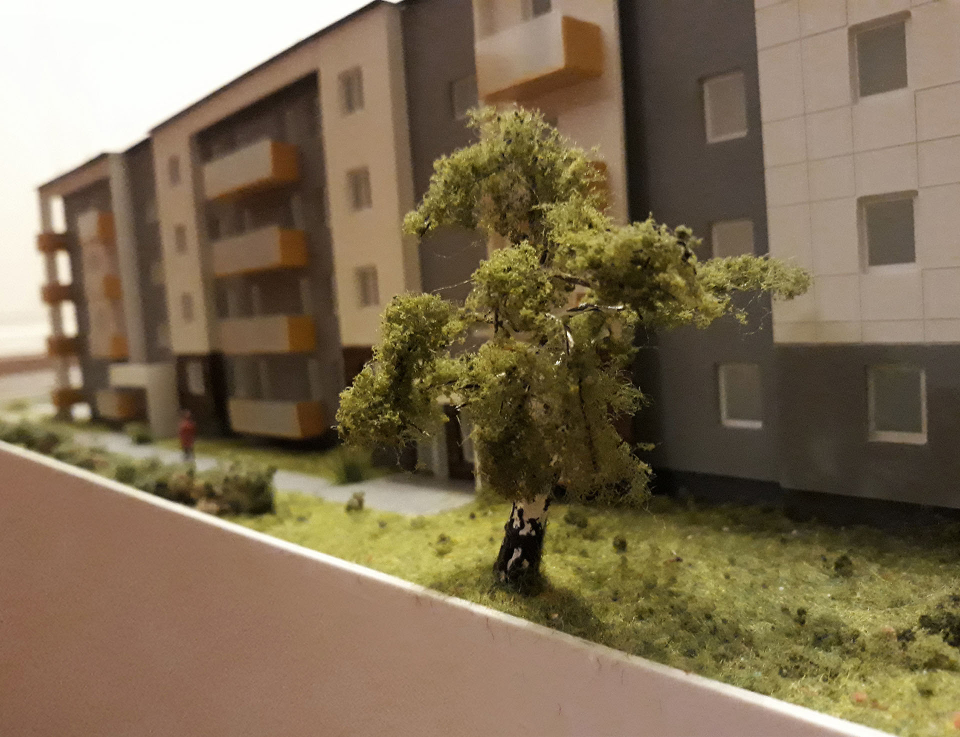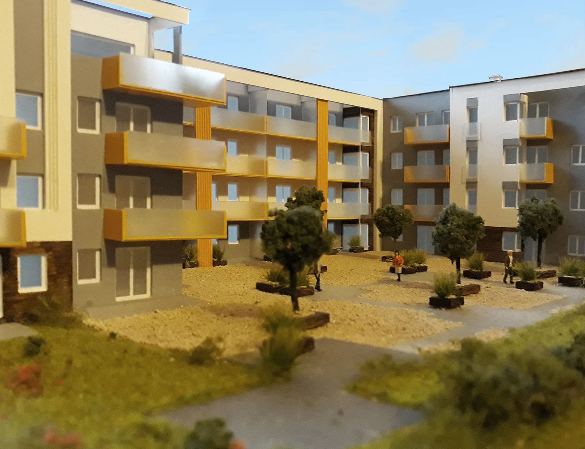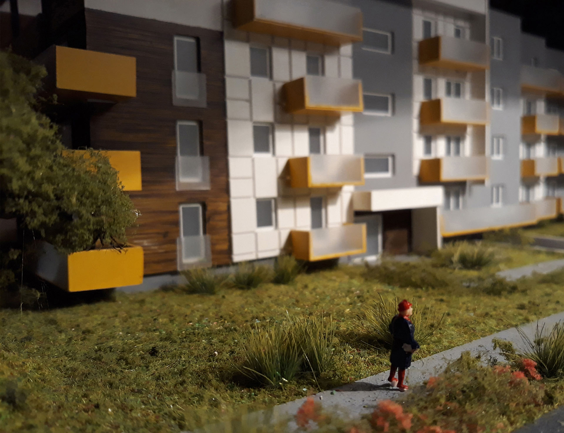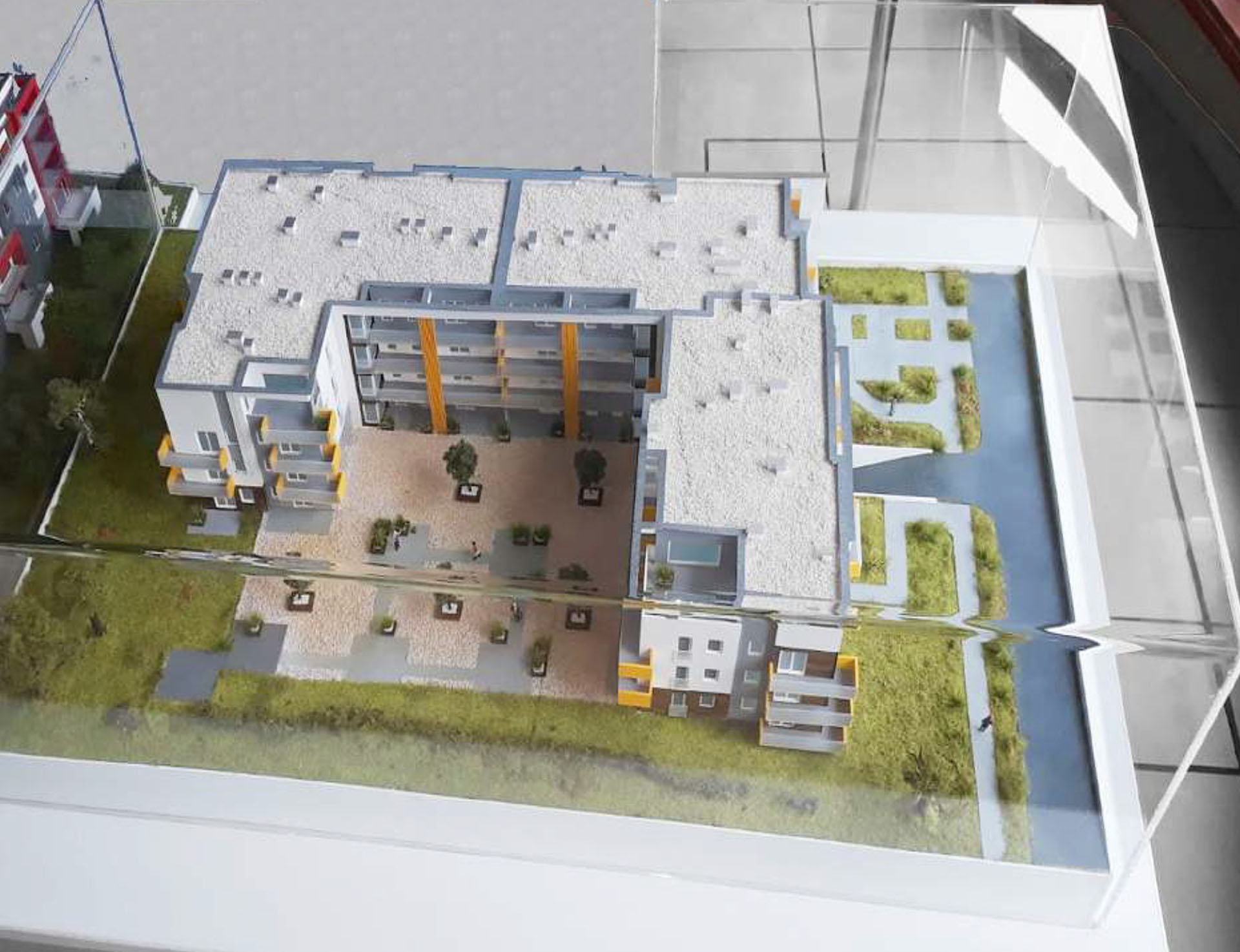 Makieta zbudowana dla dewelopera „WB” Bajda prezentuje budynek czterokondygnacyjny z podziemnym garażem oraz ogrodem zaprojektowanym na jego stropie.